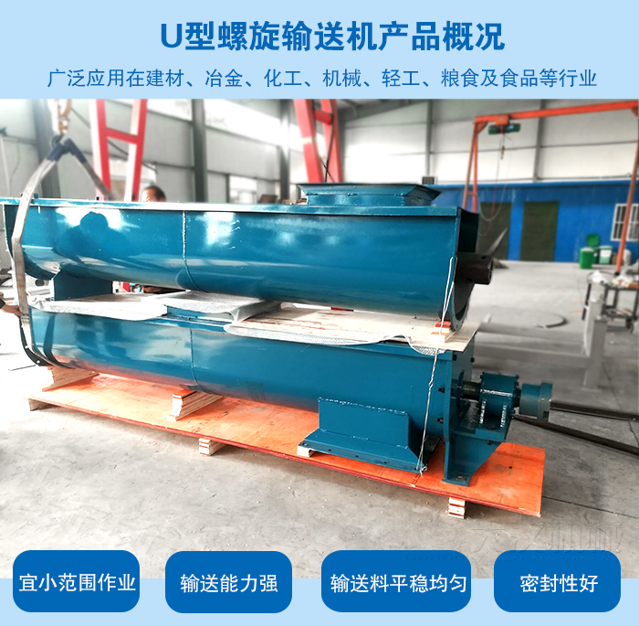 U型螺旋輸送機是螺旋輸送機的一種,適宜小范圍作業。U型螺旋輸送機因其輸送能力強,輸送料平穩均勻,不會造成揚塵、不對周邊環境進行污染,且能耗小,密封好,利屬于設備,近年來已經被廣泛應用在建材、冶金、化工、機械、輕工、糧食及食品等國民經濟的很多領域。