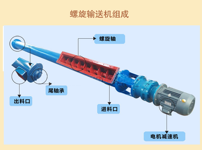(5)螺旋輸送機由螺旋機本體、進出料口及驅動裝置三部分組成。