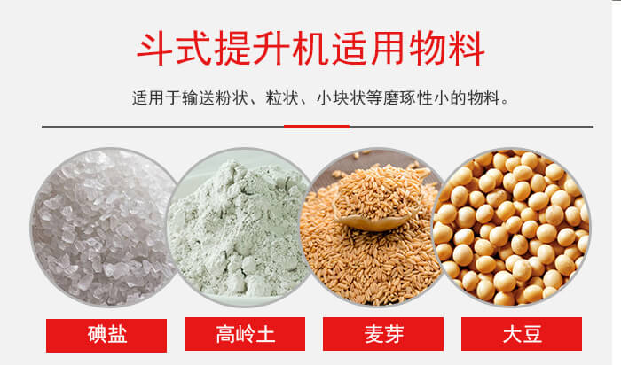 斗式提升機(jī)適用于輸送粉狀、粒狀、小塊狀等磨琢性小的物料;重力式卸料的斗速較慢,適用于輸送塊狀的,比重較大的,磨琢性大的物料,如石灰石、熟料等