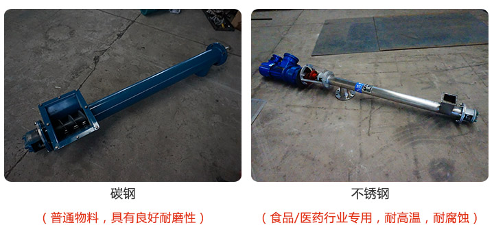 大漢小型螺旋輸送機材質有碳鋼和不銹鋼,物料不同選用的材質不同,碳鋼適合普通物料,具有良好耐磨性;不銹鋼用于食品,化工,醫藥等有衛生要求的場所,耐高溫,耐腐蝕性好。
