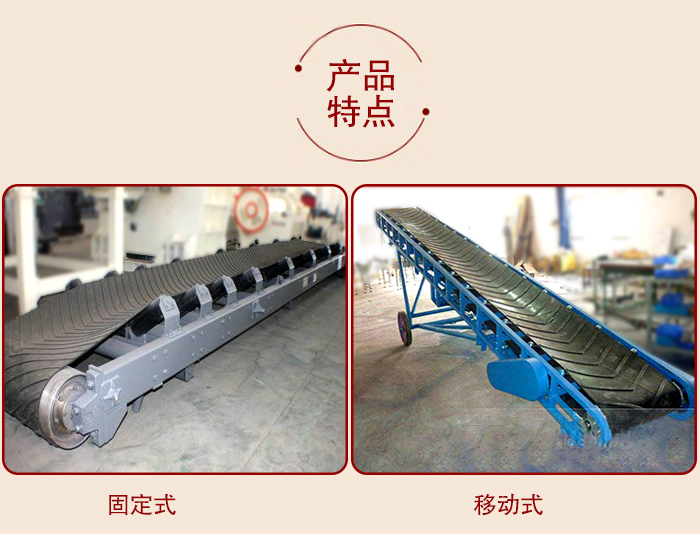 DTⅡ、TD75型帶式輸送機按其支架結構有固定式的移動式兩種:按輸送帶材料有膠帶、塑料帶和鋼芯帶之分。輸送機的工作環境溫度一般在-10oC--+40oC之間,要求物料溫度不超過70oC;耐熱橡膠帶可輸送120oC以下的高溫物料。物料溫度更高時不宜采用膠帶輸送機。
