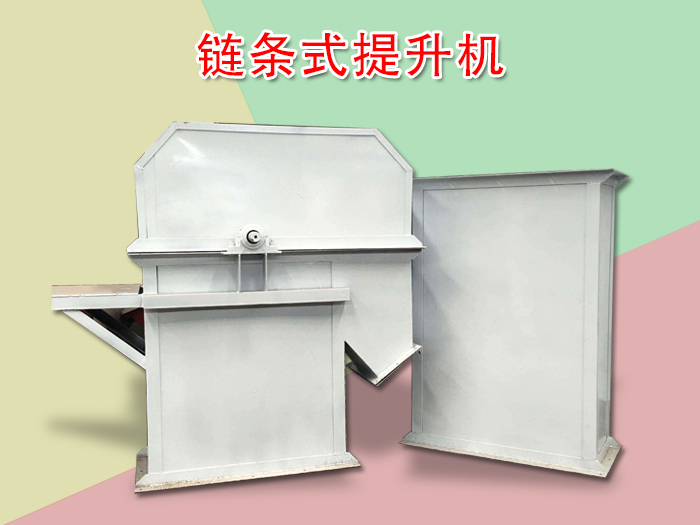 鏈條式提升機由運行部件、鏈輪螺栓挖斗料斗、驅動裝置、上部裝置、中部機殼、下部裝置、斗子鏈子組成。
